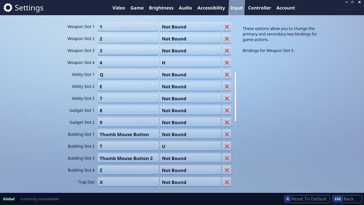 Keybindings, som kanske bäst kan översättas till snabbkommandon på svenska, fungerar än så länge endast på PC-versionen av Fortnite. Det innebär helt enkelt att du tillägnar speciella knappar olika funktioner. Har du flera knappar på musen, bör du till exempel ge dem olika byggfunktioner.