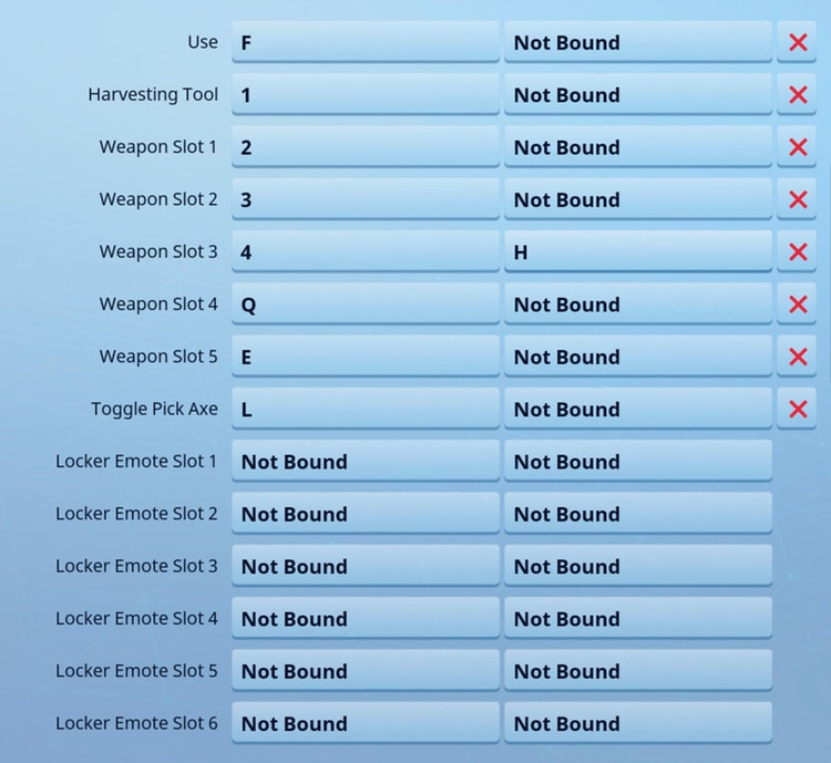 De flesta Fortnite-spelare använder också extraknappar på musen för att skapa ”key bindings”, eller snabbkommandon, med funktioner som ofta används.