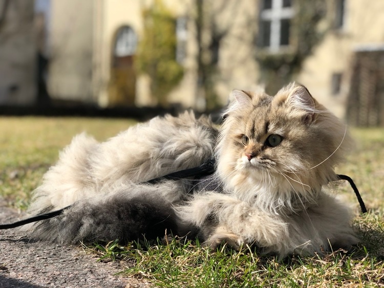 MODELL-KATT: Katten Grizzly poserar på bakgården, medan kattens ägare Daniel Rosenquist tar bilden. FOTO PRIVAT