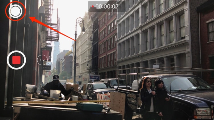 EXTRA KNAPP: När du filmar dyker det upp en extra utlösarknapp för att ta bilder. SKÄRMDUMP IPHONE