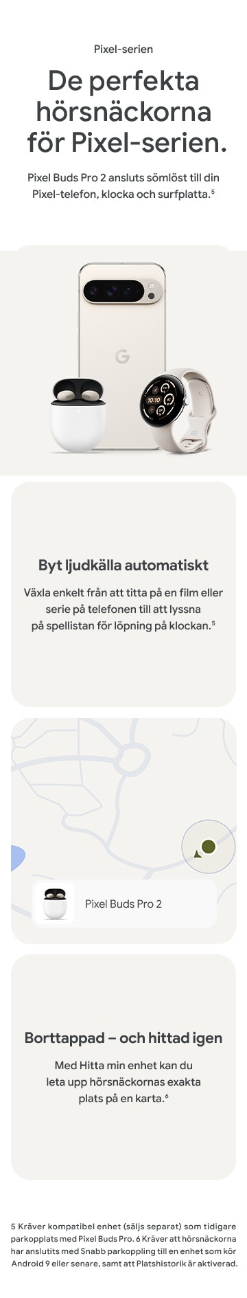 Upplev nästa nivå av ljud med Google Pixel Buds Pro 2. Med förstklassig ljudkvalitet, aktiv brusreducering och komfort hela dagen är dessa hörlurar perfekta för både arbete och fritid. Få en enastående ljudupplevelse med Googles senaste teknologi.