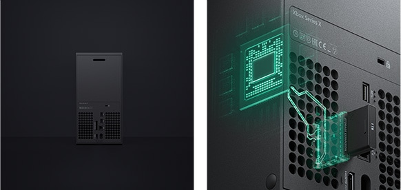 Xbox Series X Storage Expansion Card ger extra spellagring med hög hastighet och prestanda genom att replikera konsolens interna anpassade SSD-upplevelse. 1 TB-kortet sätts in direkt på baksidan av konsolen via den dedikerade lagringsutökningsporten.