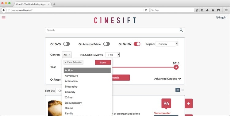Är det film du är på jakt efter kan det vara smart att gå in på webbsidan Cinesift, som kombinerar ratings från IMDB, Rotten Tomatoes och flera andra sidor. Här kan du filtrera så att sökningen endast visar filmer som är tillgängliga på svenska Netflix.