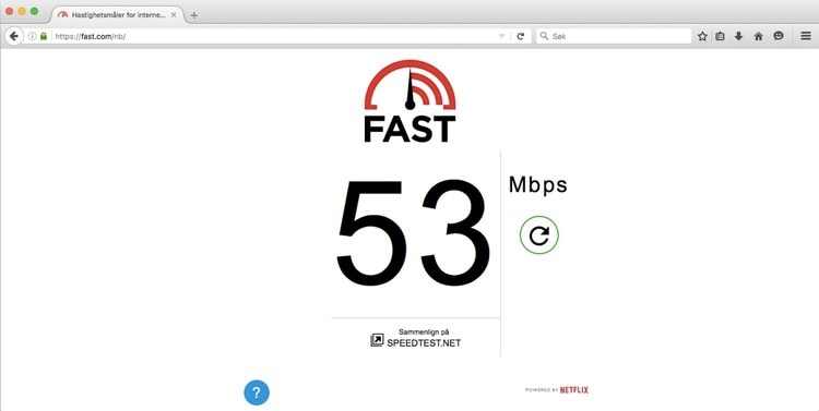 Tillräckligt snabbt? Nätsidan Fast.com tar reda på om din nedladdningshastighet är hög nog för att streama filmer och TV-serier. FOTO: SKÄRMDUMP Fast.com