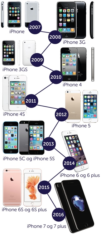 Den senaste: I höst blev iPhone 7 lanserad. Det är den fjortonde Apple-telefonen om man räknar de olika modellerna som blivit lanserad i löpet av de senaste tio åren. Foto: producenten