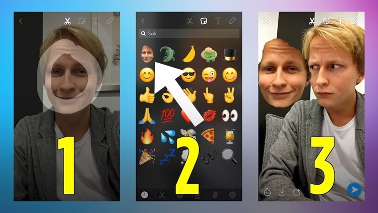 KUL KNEP: "Klipp" i dina bilder för att skapa egna klistermärken. ILLUSTRATION: SKÄRMDUMP SNAPCHAT/VG PARTNERSTUDIO