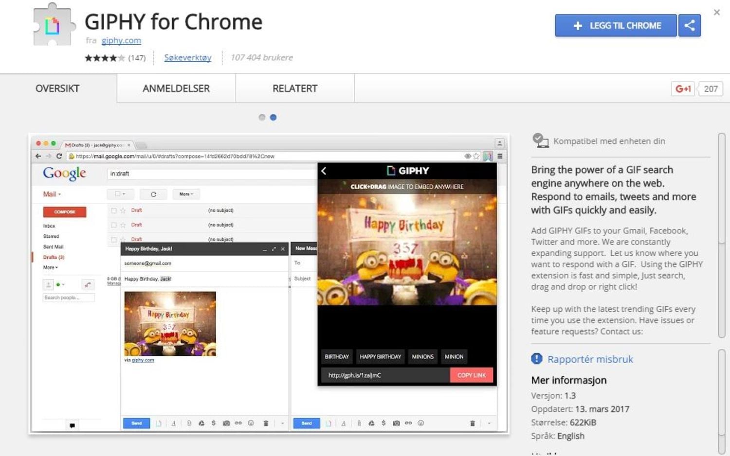 KUL OCH ENKELT: GIPHY gör att du kan skicka roliga eller irriterande mail, beroende på vem du frågar. FOTO: SKÄRMDUMP CHROME WEB STORE.