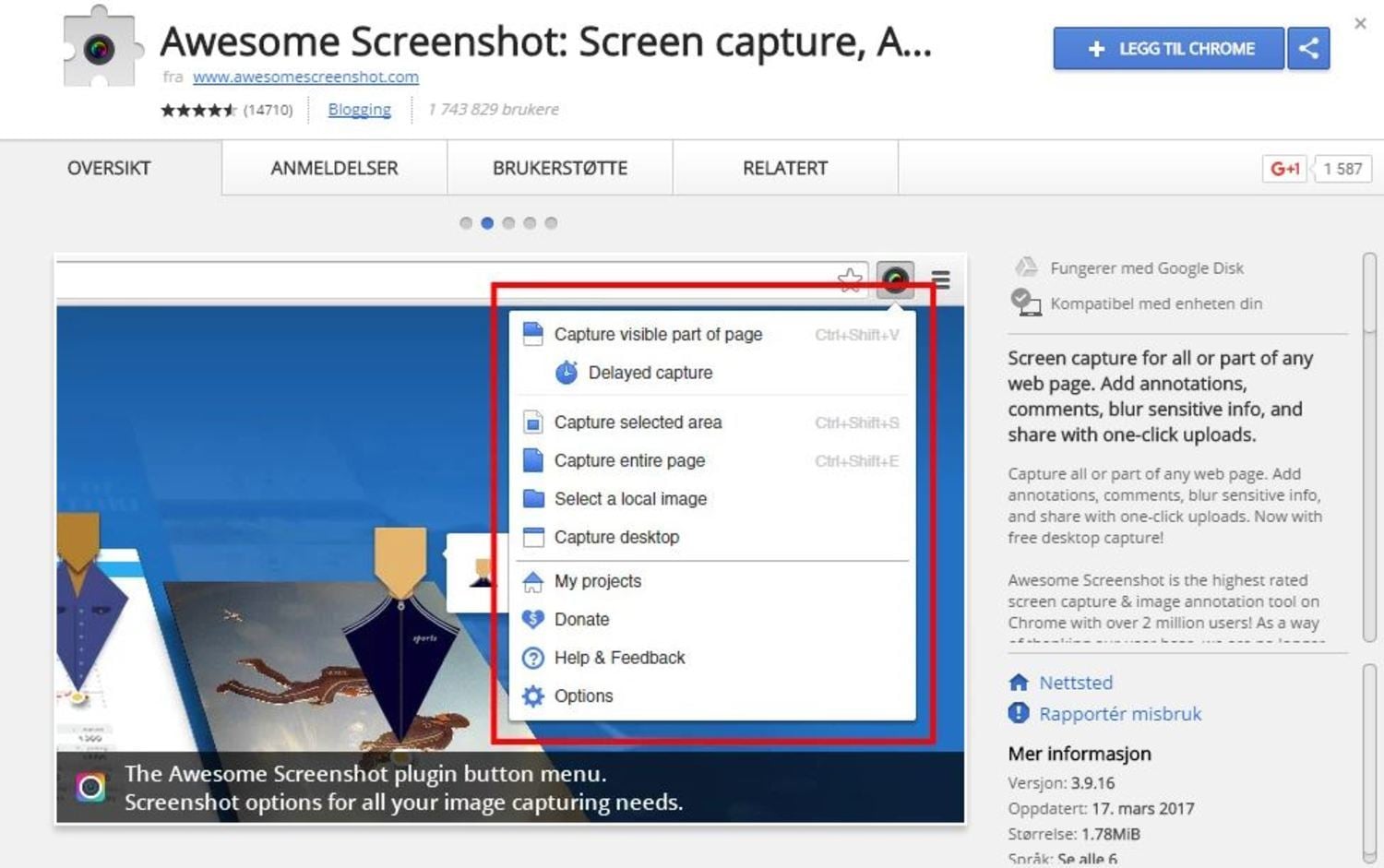 BÄTTRE BILDER: Awesome Screenshot gör det enklare att både ta och dela skärmbilder. FOTO: SKÄRMDUMP CHROME WEB STORE