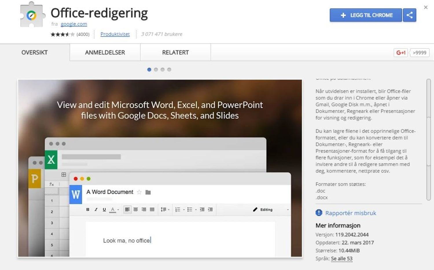 SAMKÖR: Med Office-redigering kan du öppna Office-filer direkt i Googles program på internet. FOTO: SKÄRMDUMP CHROME WEB STORE.