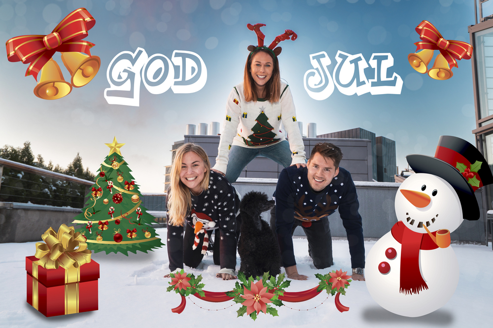 JULGLÄDJE: Så här glada blev Smart-redaktionen när de fick till det här snygga julkortet. FOTO: VG PARTNERSTUDIO