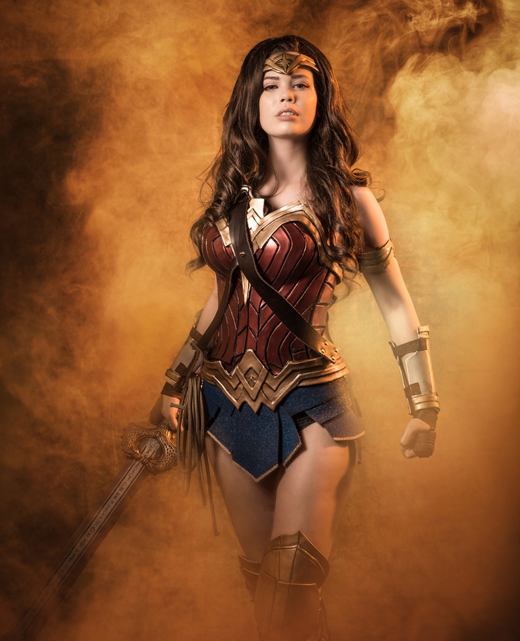 SKAPAT AV YOGAMATTOR: Här har Tine Marie Riis på sig sin cosplay av karaktären ”Wonder Woman”, som superhjälte-figuren i filmen Justice League, som kom ut tidigare i år. Överdelen har hon skapat genom att skära ut bitar av yogamattor. FOTO: ANDREY SPIRIDONOV PHOTOGRAPHY