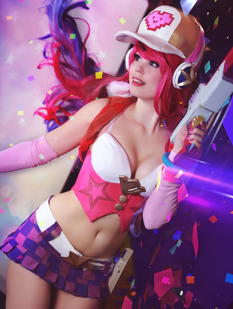 LEAGUE OF LEGENDS-FIGUR: Färgstarka Arcade Miss Fortune skjuter skadliga ljusstrålar mot motståndarna i dataspelet. FOTO: KATRIX MEDIA