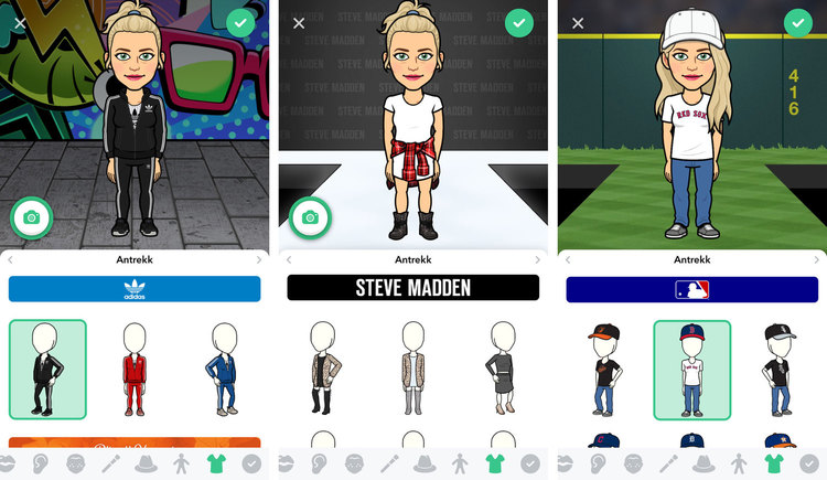 Även om du inte har råd att köpa dyra designer-kläder i det verkliga livet, så har din Bitmoji det. Tack vare Snapchats samarbeten med olika designers kan du välja och vraka i allt från ”high end”-design till ”streetwear” till din Bitmoji, utöver arbetsuniformer och supporterkläder.