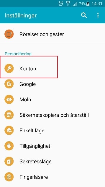 Välj ”Konton”