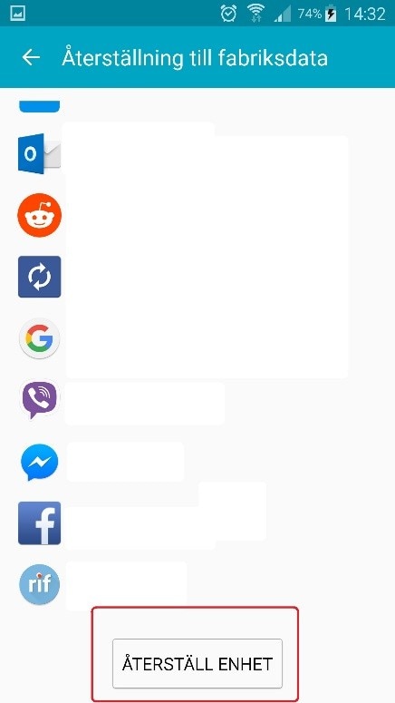 Nu klickar du på Återställ enhet
