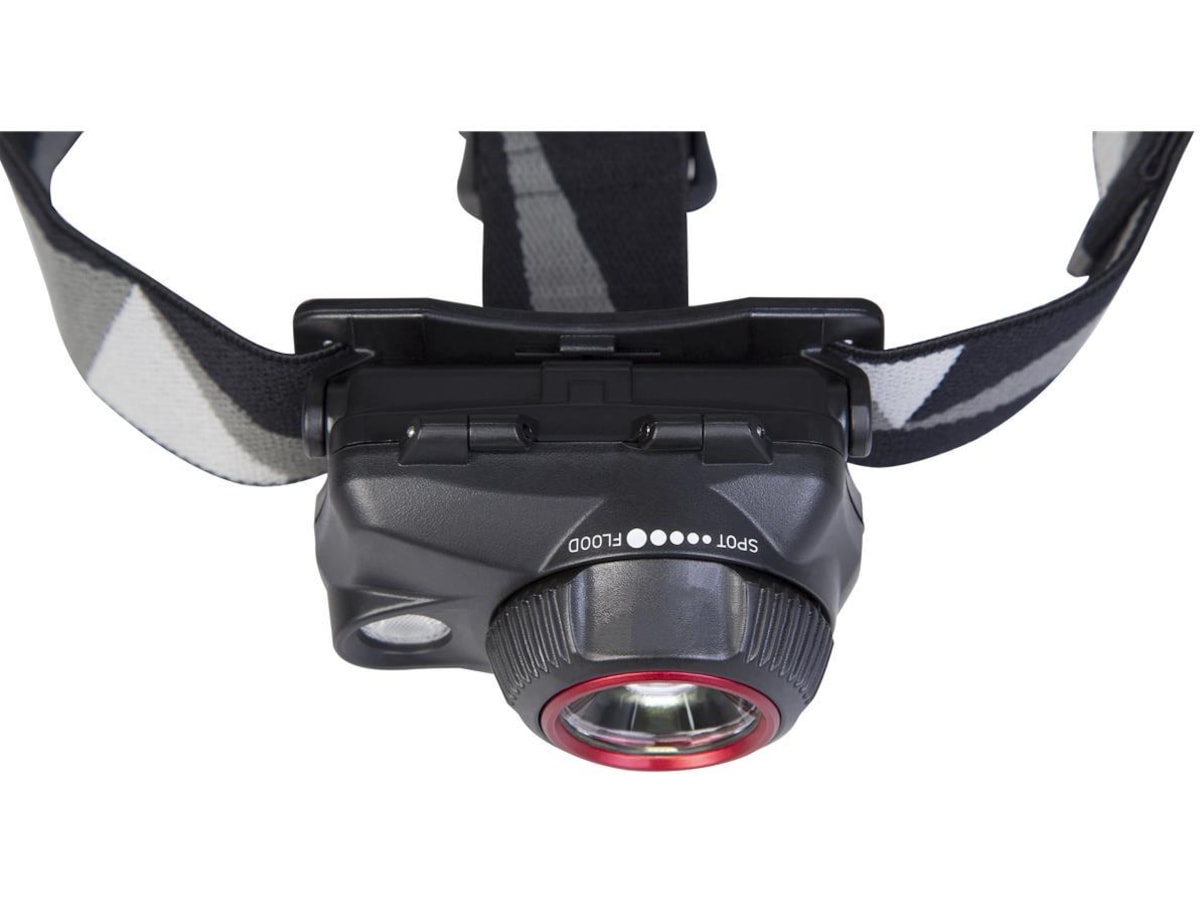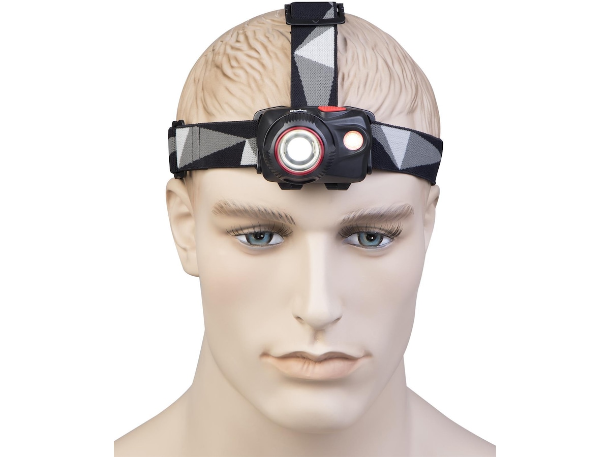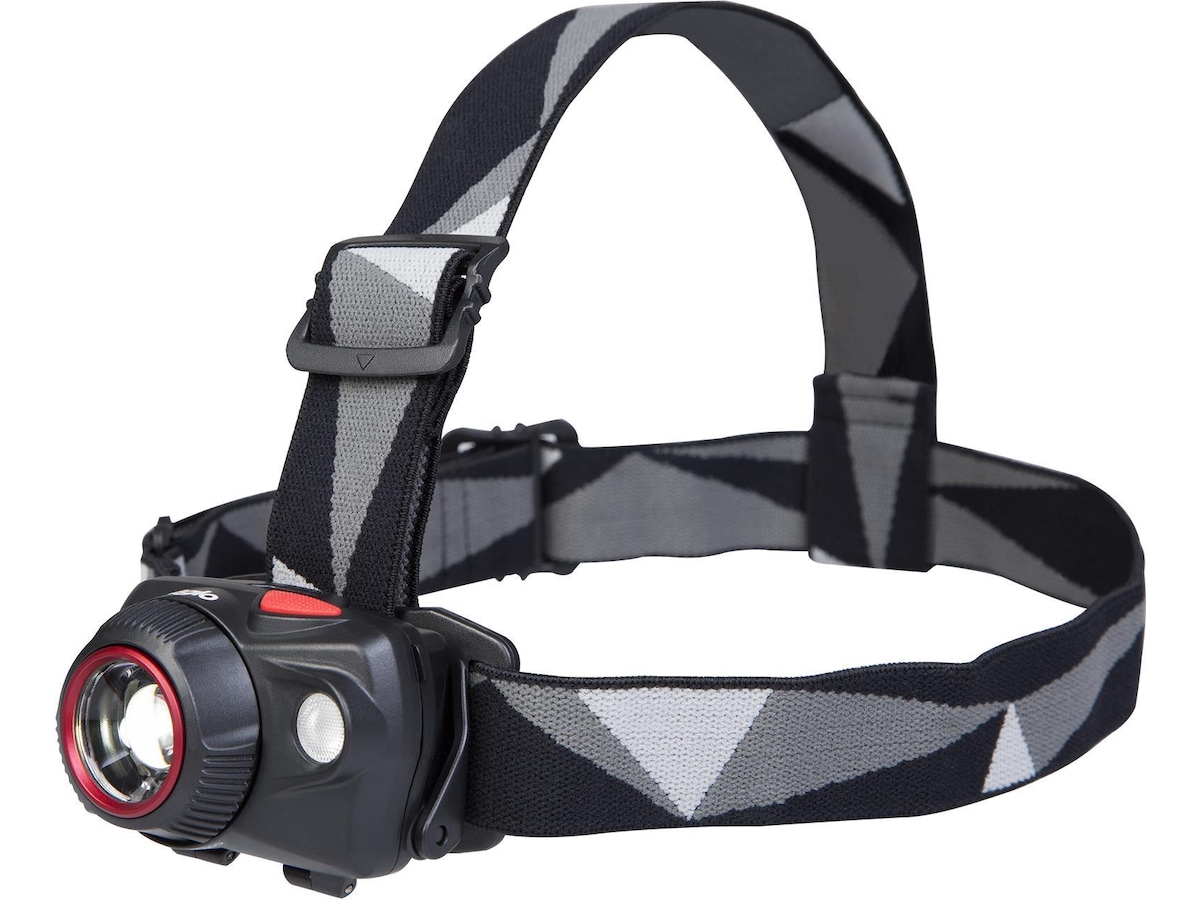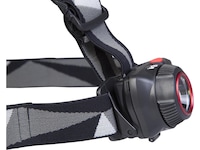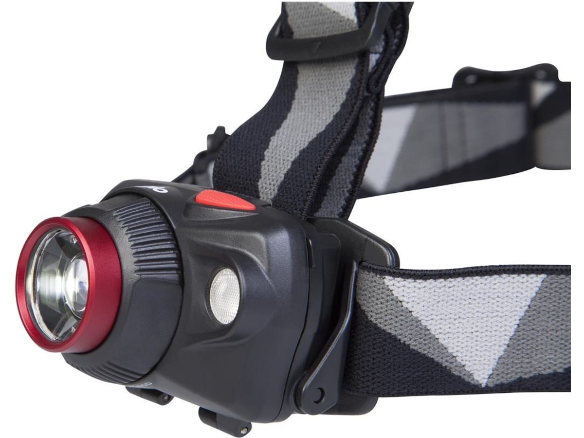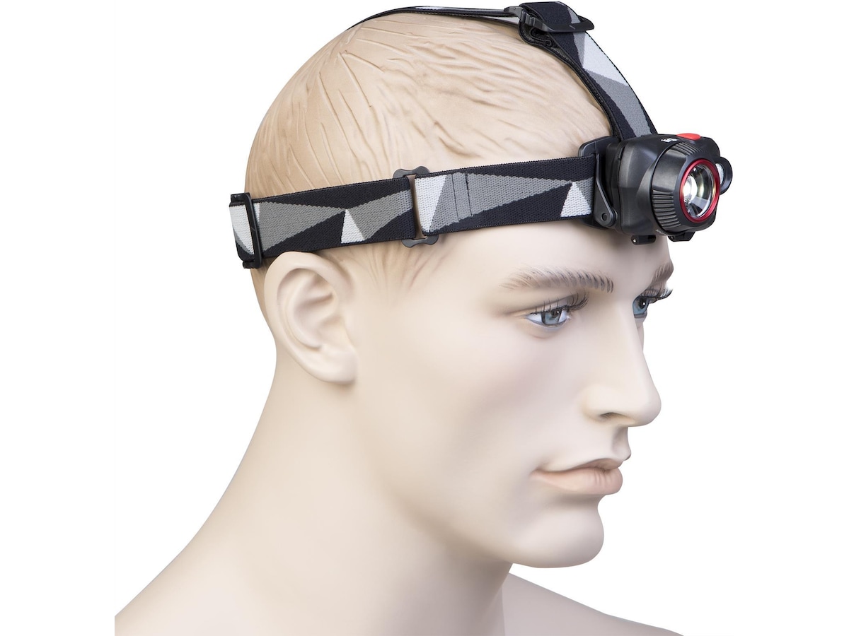 Denna kraftfulla pannlampa har två ljuskällor som tillsammans har fem olika ljuslägen för att passa allas behov. Tre olika ljuslägen i vitt ljus från från den främre glödlampan och två lägen från en ytterligare 0,5 W Nichia Röd LED-glödlampa. Den främre glödlampan har en lins som avger ett jämnt och klart ljus, och genom att vrida på ringen runt linsen justeras ljuskällans fokus från smal till bred. Vid maximal styrka har lampan en räckvidd på 150 meter. Genom den fria projektionsvinkeln kan du enkelt justera lampans riktning och vinkel.