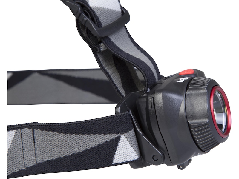 Denna kraftfulla pannlampa har två ljuskällor som tillsammans har fem olika ljuslägen för att passa allas behov. Tre olika ljuslägen i vitt ljus från från den främre glödlampan och två lägen från en ytterligare 0,5 W Nichia Röd LED-glödlampa. Den främre glödlampan har en lins som avger ett jämnt och klart ljus, och genom att vrida på ringen runt linsen justeras ljuskällans fokus från smal till bred. Vid maximal styrka har lampan en räckvidd på 150 meter. Genom den fria projektionsvinkeln kan du enkelt justera lampans riktning och vinkel.