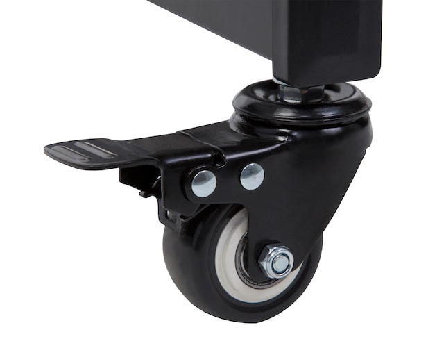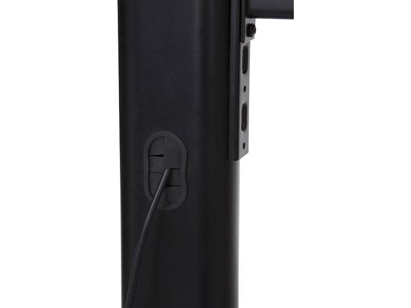 Trots den färdiga storleken är TV-vagnen förvånansvärt lätt att installera. Plattskärmens höjd kan justeras. Du kan enkelt komma åt kablarna bakom TV:n, och gömma undan dem i de ihåliga monteringsrören. Detta förhindrar onödigt kabeltrassel när du flyttar på vagnen. Vagnen står på en stadig basenhet med låsbara hjul.