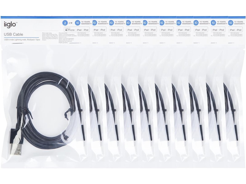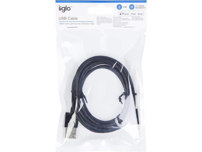 USB A 2.0 male to Lightning male svart 2m 10pk