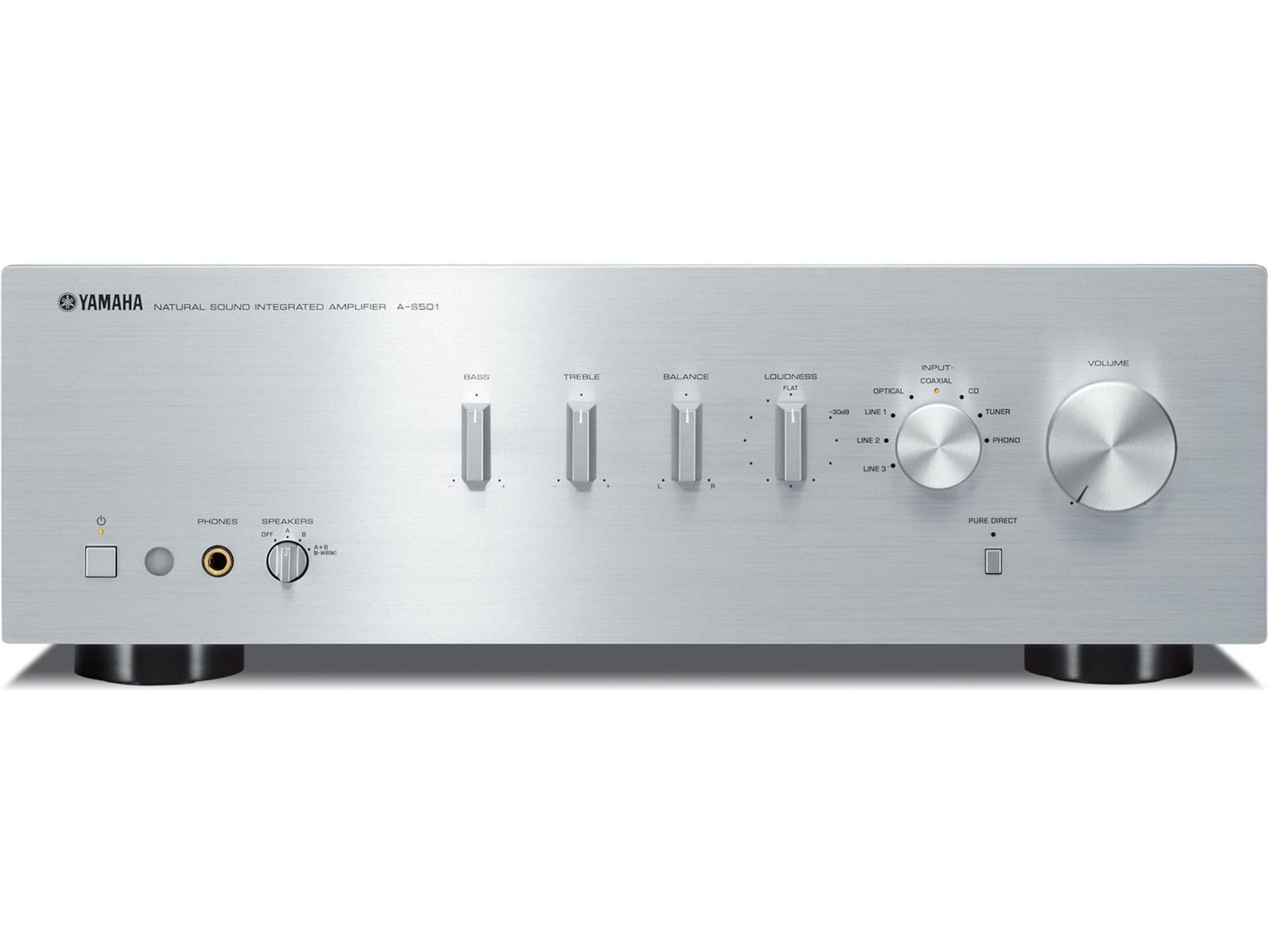 Yamaha A-S501 Mycket hög ljudkvalitet med ett brett utbud av funktioner och ett elegant utseende. En integrerad förstärkare med fördelen av digitala ingångar. ToP-ART (Total Purity Audio Reproduction Technology) och delar av hög kvalitet I/O (ingång till utgång) Direkt symmetrisk design - ART (Anti-Resolution and Tough) Base - Skräddarsydd krafttransformator / 12 000uF blockkondensatorer / Aluminiumextruderade kylflänsar 120W x 2 (max), 85W x 2 (RMS) uteffekt Rent direktläge för högre ljudrenhet Kontinuerlig reglering av ljudstyrkan Guldpläterade högtalarterminaler och RCA (CD, Phono) och koaxialterminaler Digital ljudingång för TV eller Blu-ray-spelare Anslutning för YBA-11 trådlös Bluetooth-adapter Enkel men sofistikerad design (frontpanel i aluminium) Auto Power Standby