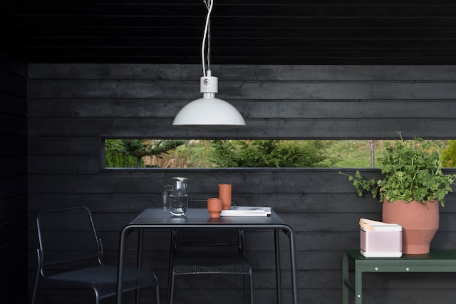 Mill infraröd terrassvärmare 1 500 W med ett kolvärmeelement. Denna fantastiska och unika terrassvärmare är utformad som en elegant lampa och kommer att smälta in i ditt hems exteriör på ett naturligt sätt. Terrassvärmaren monteras på taket med en justerbar kabel och ser särskilt elegant ut över ett matbord eller loungeområde. Levereras med en fjärrkontroll med 2 värmelägen (750/1 500 W). Produkten har ett kolvärmeelement som ger en behaglig värme, och ett mjukt, behagligt ljus jämfört med traditionella terrassvärmare som tenderar att ha en röd bländning. Kan användas på de flesta säkringar och minst 10A. Produkten är väderbeständig och IP25-godkänd. Gör ditt hems exteriör lika vacker som interiören med denna fantastiska terrassvärmare från Mill i en unik och modern design!