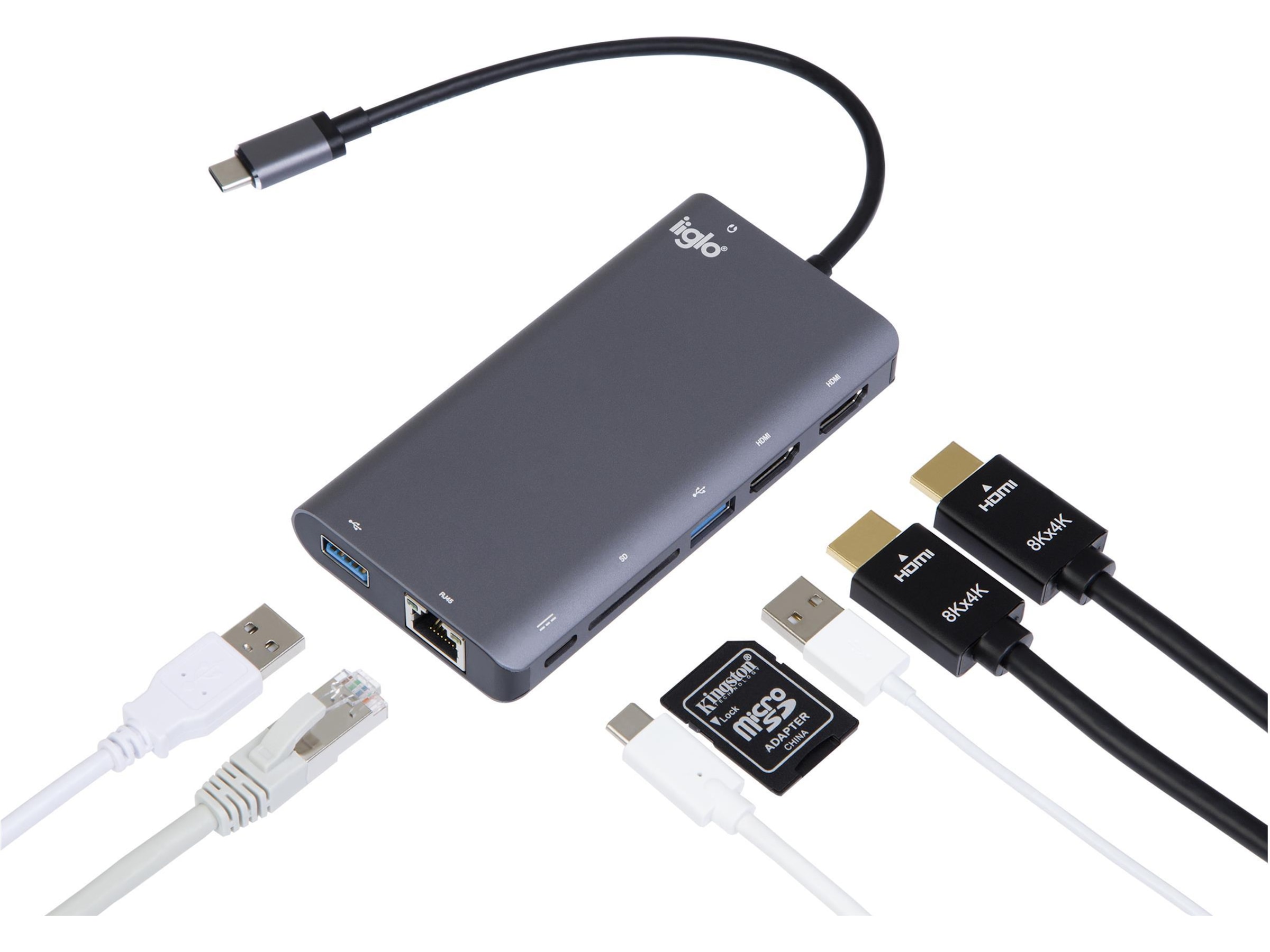 2 x SuperSpeed USB 3.0 - 9-stifts USB typ A, 1 x USB-C med strömförsörjning (100 W) - 24 pin USB-C, 1 x nätverk - RJ-45, 2 x audio / video - HDMI - 19-stifts HDMI typ A, 1 x ljud - hörlurar/mikrofon - minitelefon 3,5 mm, 4-poligt |