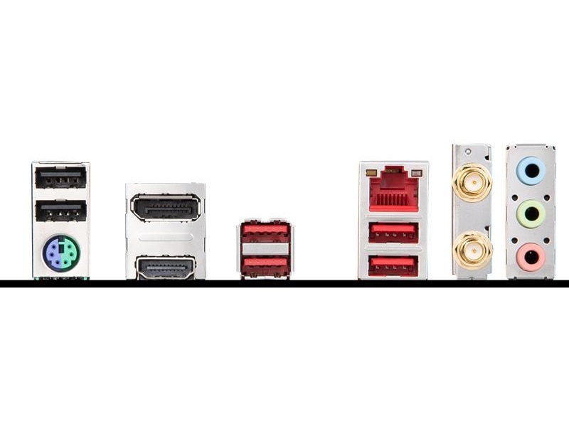 1 x LAN (Gigabit Ethernet), 1 x PS/2-tangentbord/mus, 2 x USB 2.0, 1 x DisplayPort, 1 x ljudutgång - mini-jack, 1 x mikrofon - mini-jack, 1 x ljudingång - mini-jack, 1 x HDMI, 4 x USB 3.1 Gen 1 |