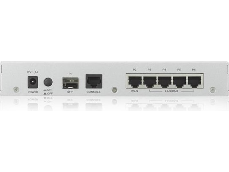 Funktioner Syslog-stöd, NAT-stöd, VPN auto-autoåteranslutning, Detektering och förebyggande av intrång (IDP), Monterbar på vägg, Programfiltrering, Management Information Base (MIB) II, VPN-stöd, DHCP-klient, Quality of Service (QoS), DHCP-relä, Fläktlös, Dynamisk DNS-server, Zero-touch VPN connections, DHCP-server, Fast programvara kan uppdateras, VLAN-hantering, Stateful Packet Inspection (SPI), Statisk routing, Brandväggsskydd