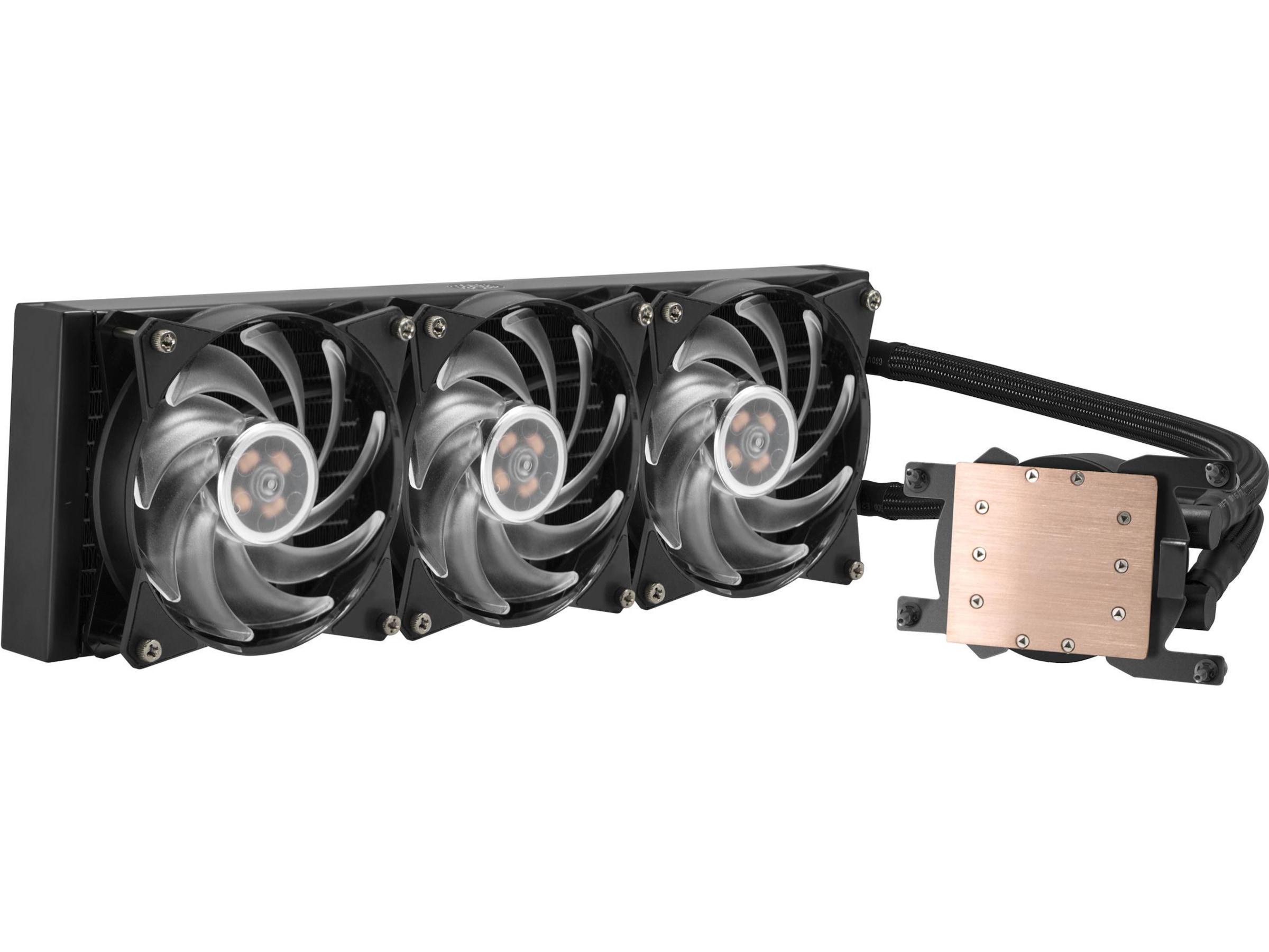 Denna MasterLiquid ML360 RGB allt-i-ett vätskedrivna CPU-kylare i TR4-versionen är anpassningsbar inifrån och ut. Exklusivt för AMD Ryzen TR4-sockeln, vilken har en större kontaktyta som är speciellt anpassad för Threadripper-processorer. Vår lågprofilerade pump med dubbla kammare utklassar dess föregångare inom värmeöverföring med bara en kammare. RGB LED-lampor är installerade på både pumpen och fläktarna för fullfärgsanpassning som kan styras via den medföljande styrenheten. De veckfria, fabriksförseglade FEP-slangarna kommer nu med muff för ett premium utseende. Skruva i och upplev den tysta kraften hos vätskekylningen, utan att någonsin behöva oroa dig för påfyllning eller underhåll. Njut av årtionden av arbete med termisk innovation.