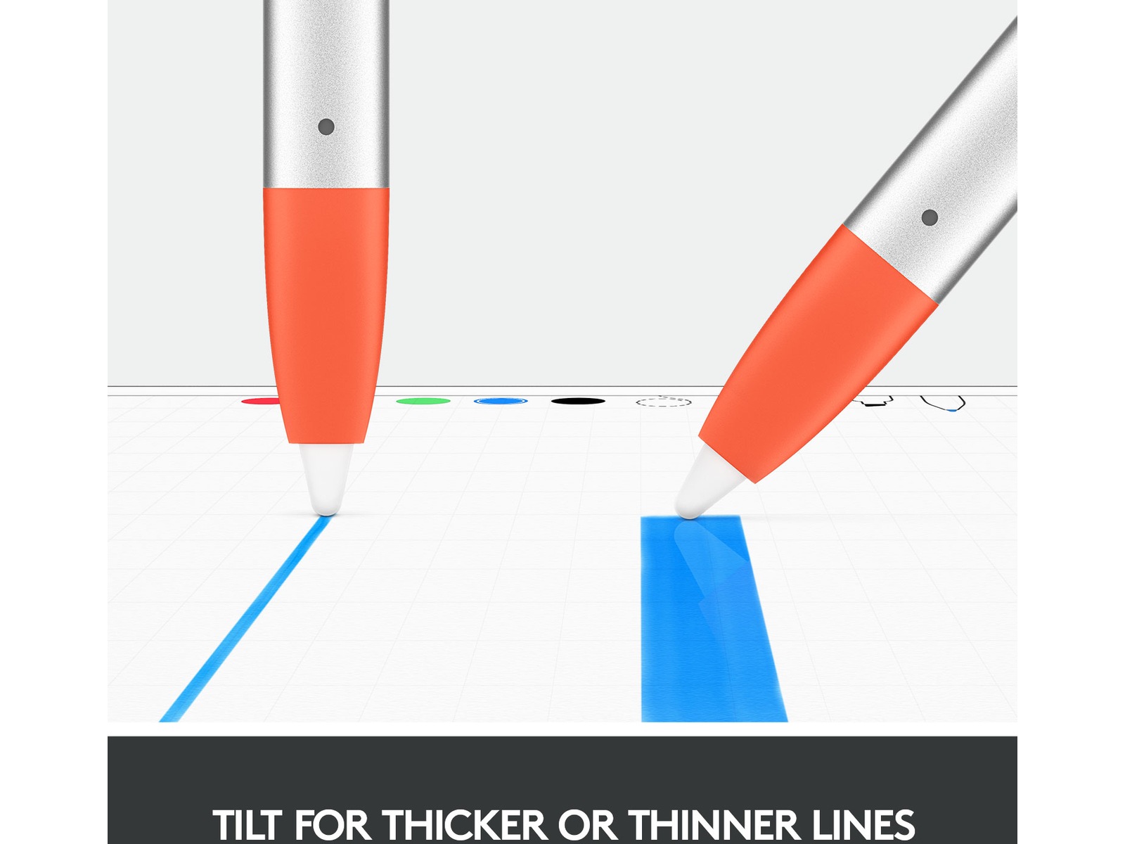 Behöver du en tjockare eller smalare linje? Bara luta. Logitech Crayon har en smart spets som dynamiskt justerar linjevikten beroende på den vinkel* du lägger den i – precis som en vanlig penna.