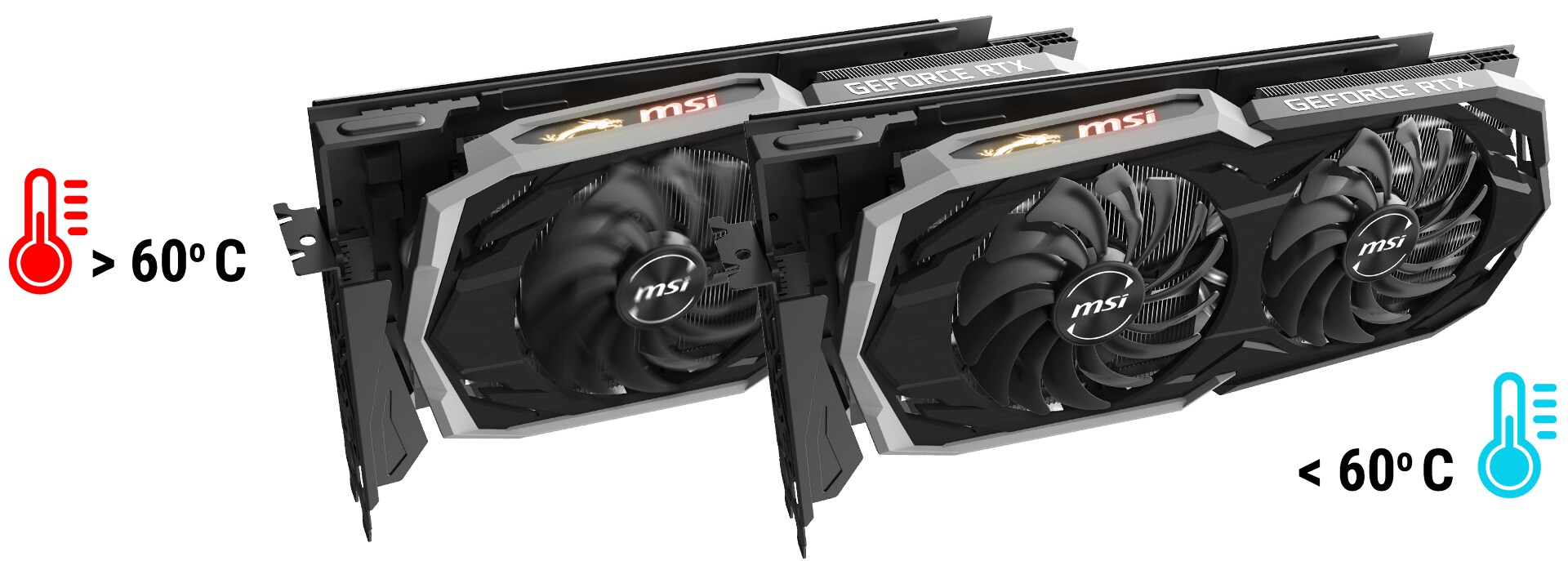 | Egenskaper för videoadapter | HDR Ready, Dual ball Bearing Fan, MSI Zero Frozr-teknik, Armor 2X Thermal Design, Torx 2.0 Fans, RGB Mystic Light, MSI Afterburner, NVIDIA G-Sync-förberedd |