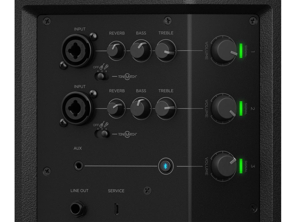 Den inbyggda 3-kanaliga mixern erbjuder oberoende ToneMatch-, reverb- och EQ-kontroller på två kanaler, med en dedikerad kanal för antingen trådbundna (3,5 mm) eller trådlösa musikkällor.