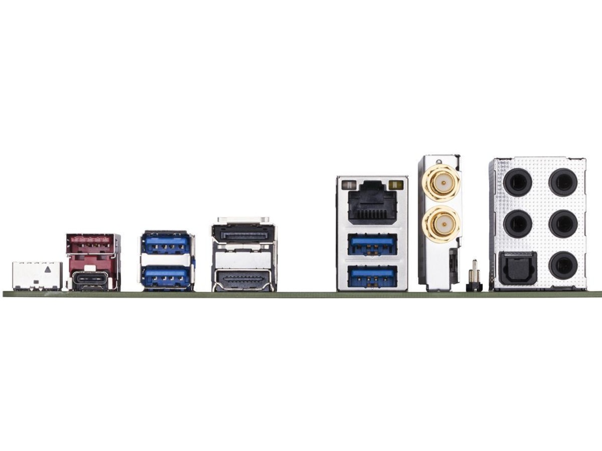 Gränssnitt 4 x USB 3.1 Gen 1, 1 x ljudutgång - mini-jack, 1 x TOSLINK, 1 x USB-C Gen2, 1 x ljudutgång (bakre) - mini-jack, 1 x ljudingång - mini-jack, 1 x DisplayPort, 1 x LAN (Gigabit Ethernet), 1 x ljudutgång (center/subwoofer) - mini-jack, 1 x USB 3.1 Gen 2, 1 x mikrofon - mini-jack, 1 x HDMI