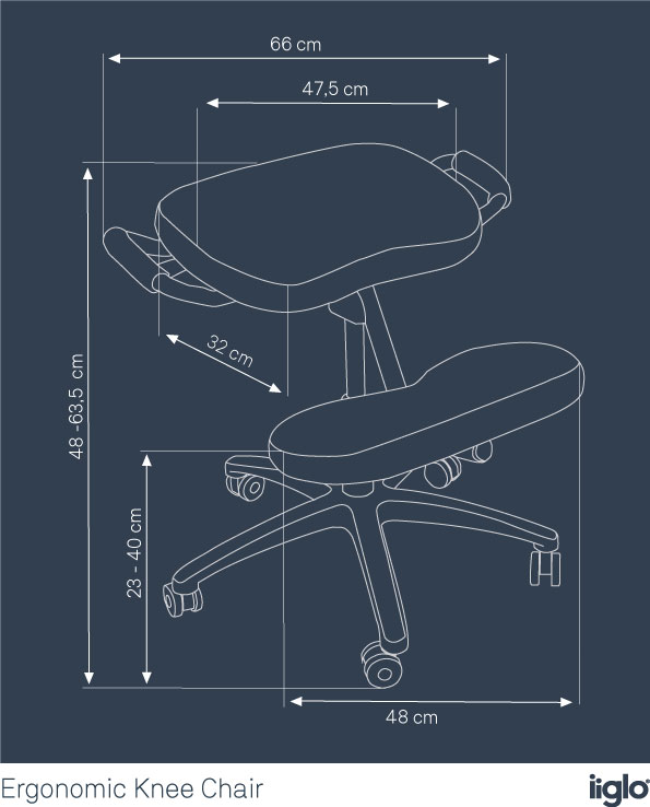 iiglo-stolen hjälper dig att hålla ryggen i upprätt läge och fördela vikten jämnt över benen, knäna, nedre delen av ryggen och skinkorna medan du håller ryggraden rak.