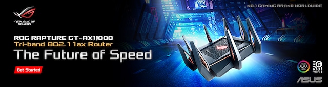 AX11000 Tri-band WiFi 6 (802.11ax) Gamingrouter – världens första 10 Gigabit WiFi-router med en fyrkärnig processor, 2,5G gamingport, DFS-band, wtfast, Adaptive QoS, AiMesh för Mesh-wifi-system och AiProtection Pro nätverksskydd