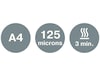 - Det tar ca 1 minut att laminera ett A4-dokument (80 mikron)