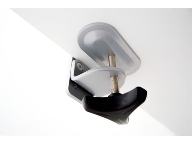 Skärmarmen kommer med både klämma och genomgående fäste, vilket gör att du flexibelt kan placera skärmen på bordet. Alla lederna på armen är utrustade med skruvar så att bildskärmen kan låsas i ett fast läge.