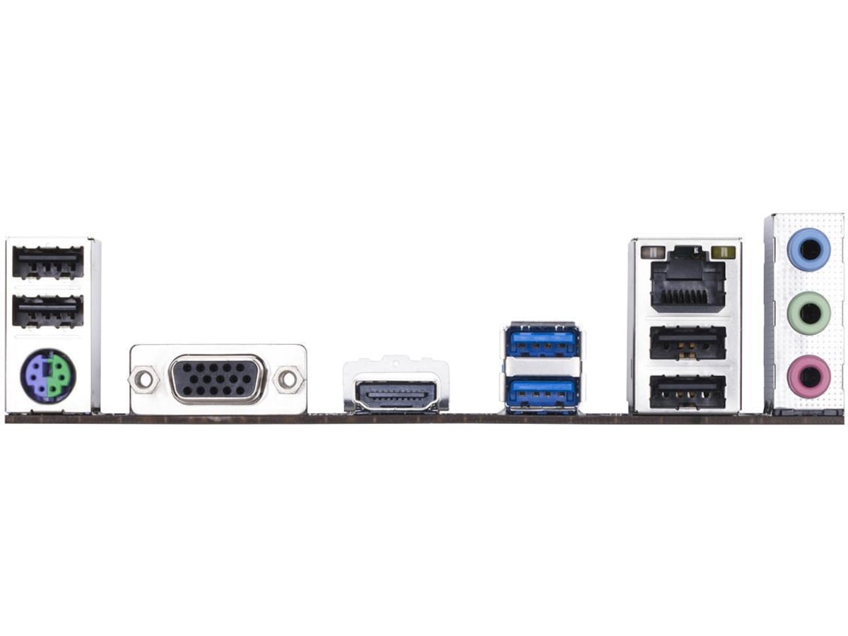 1 x ljudutgång - mini-jack, 1 x ljudingång - mini-jack, 1 x LAN (Gigabit Ethernet), 2 x USB 3.1 Gen 1, 1 x PS/2-tangentbord/mus, 1 x VGA, 1 x HDMI, 1 x mikrofon - mini-jack, 4 x USB 2.0 |