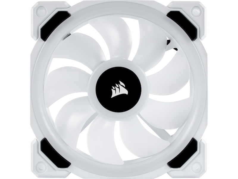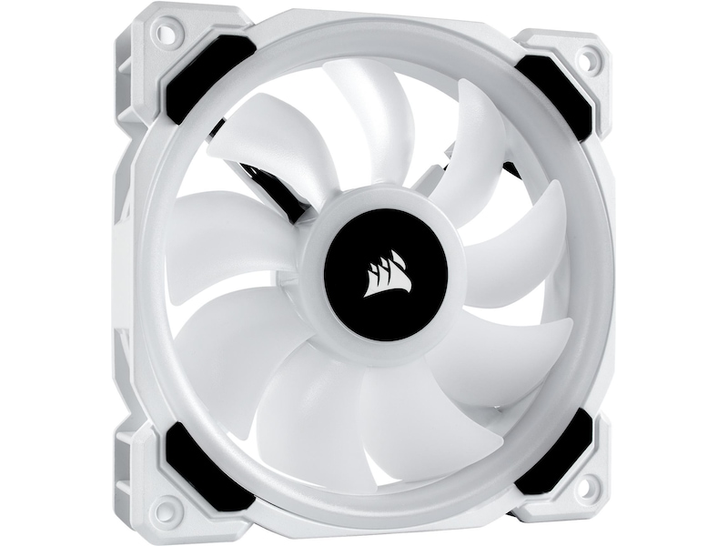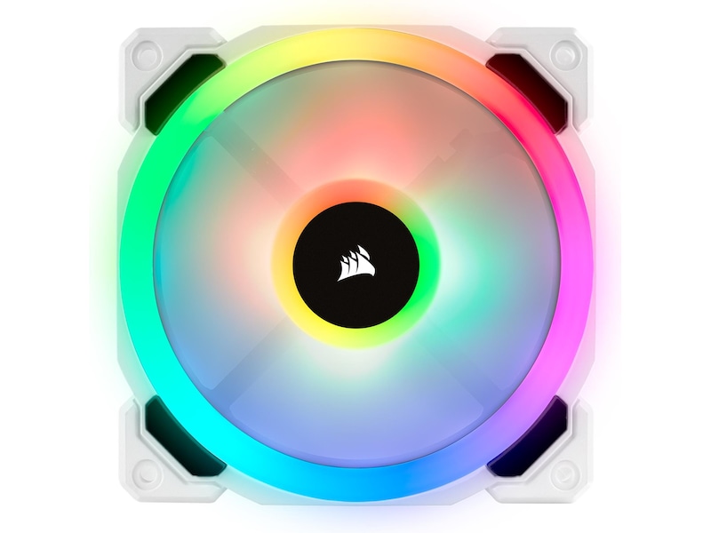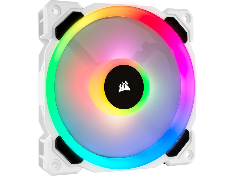 Corsair:s vita smarta fläkt LL120 RGB LED 120 mm PWM har 16 individuellt adresserbara RGB-lysdioder spridda över två separata ljusslingor i ett glänsande vitt chassi, vilket skapar en pulserande belysning och visuella effekter.