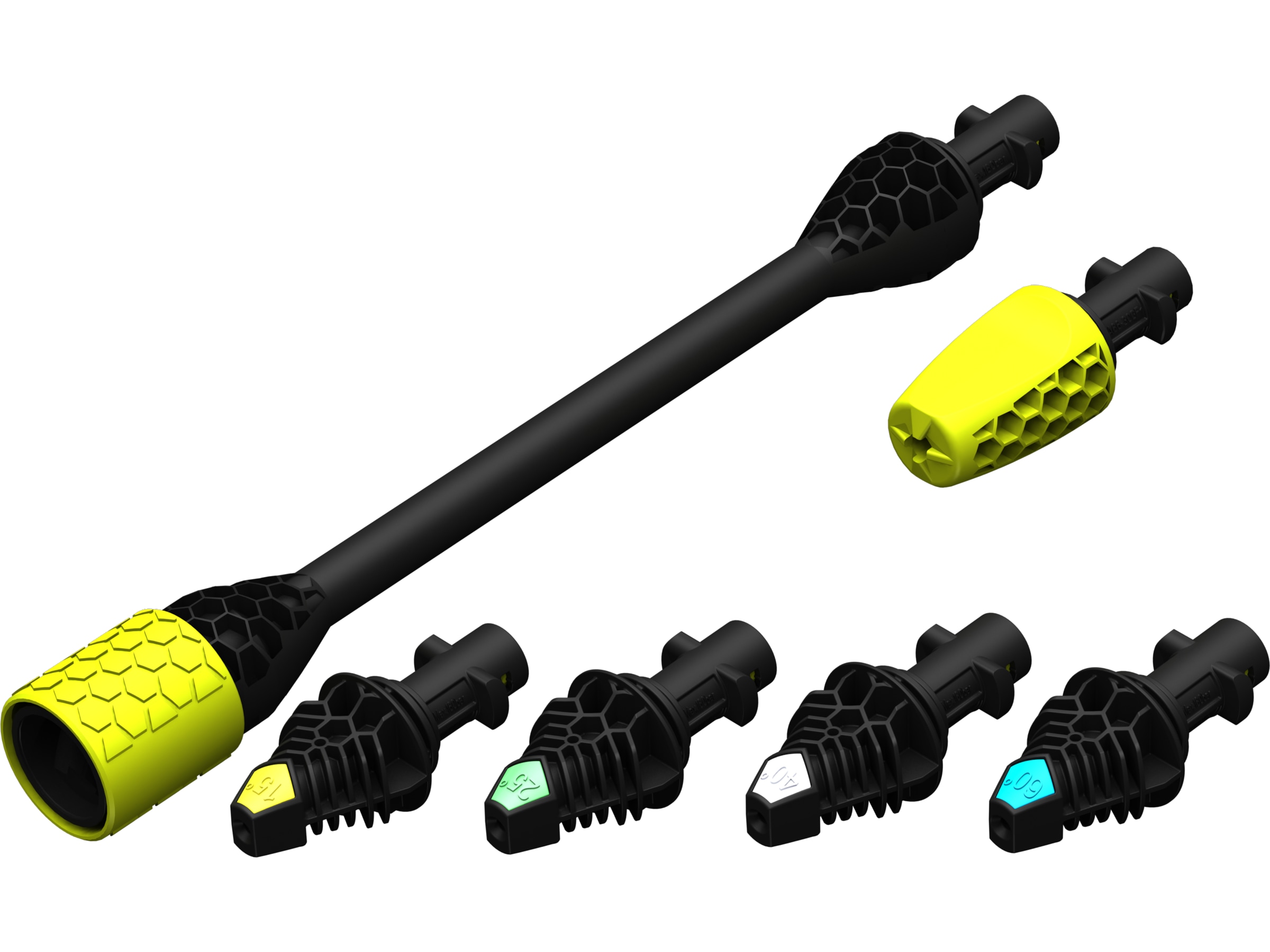 Munstycken och lans ger dig möjligheten att kombinera kraft och flexibilitet för alla dina arbeten. Innehåller en 35 cm förlängningslans, fyra fastamunstycken med olika strålspridning och ett högeffektivt turbomunstycke (rotor) för de tuffaste arbetena. Turbomunstycket passar inte direkt på högtryckspistolen så du behöver använda en lans emellan munstycket och högtryckspistolen. (Passar även Kärcher)