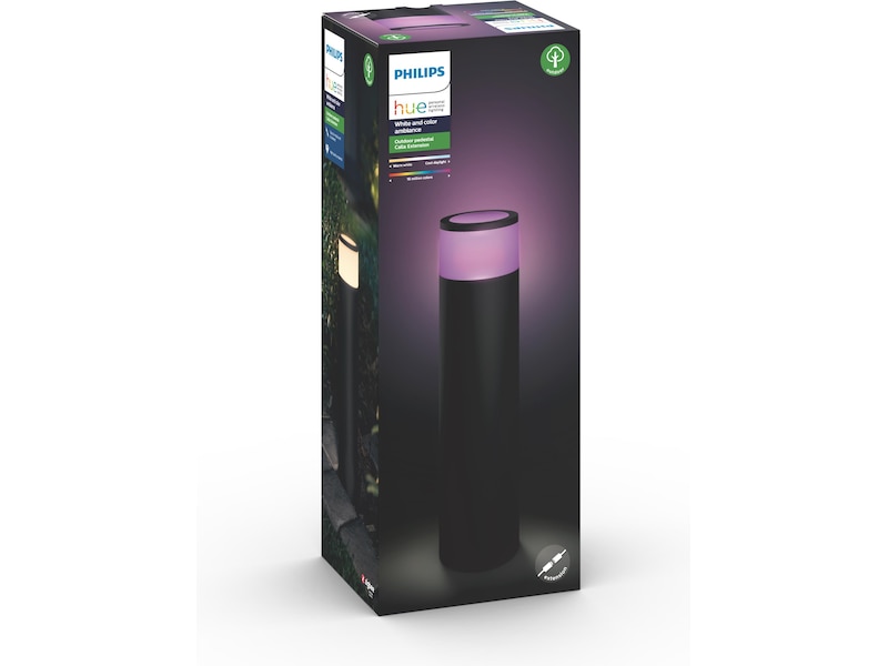 Denna piedestal är enkel att installera, get ifrån sig ett fantastiskt ljus, samtidigt som du kan kontrollera den helt trådlöst. Skapa scheman så att din uteplats lyser upp automatiskt när det blir kväll, eller aktivera platslokalisering i Hue-appen så att ljuset välkommnar dig hem efter en lång dag på jobbet. Precis som andra armaturer i kategorin White and color ambiance, så har Calla tillgång till över 16 miljoner nyanser av färg, allt du kan behöva för att skapa den perfekta stämningen. Denna utökningsenhet kommer inte med ett nätaggregat, så passar dig som endast vill utöka ditt belysningssystem som är kopplat till ditt existerande Hue-nätaggregat.