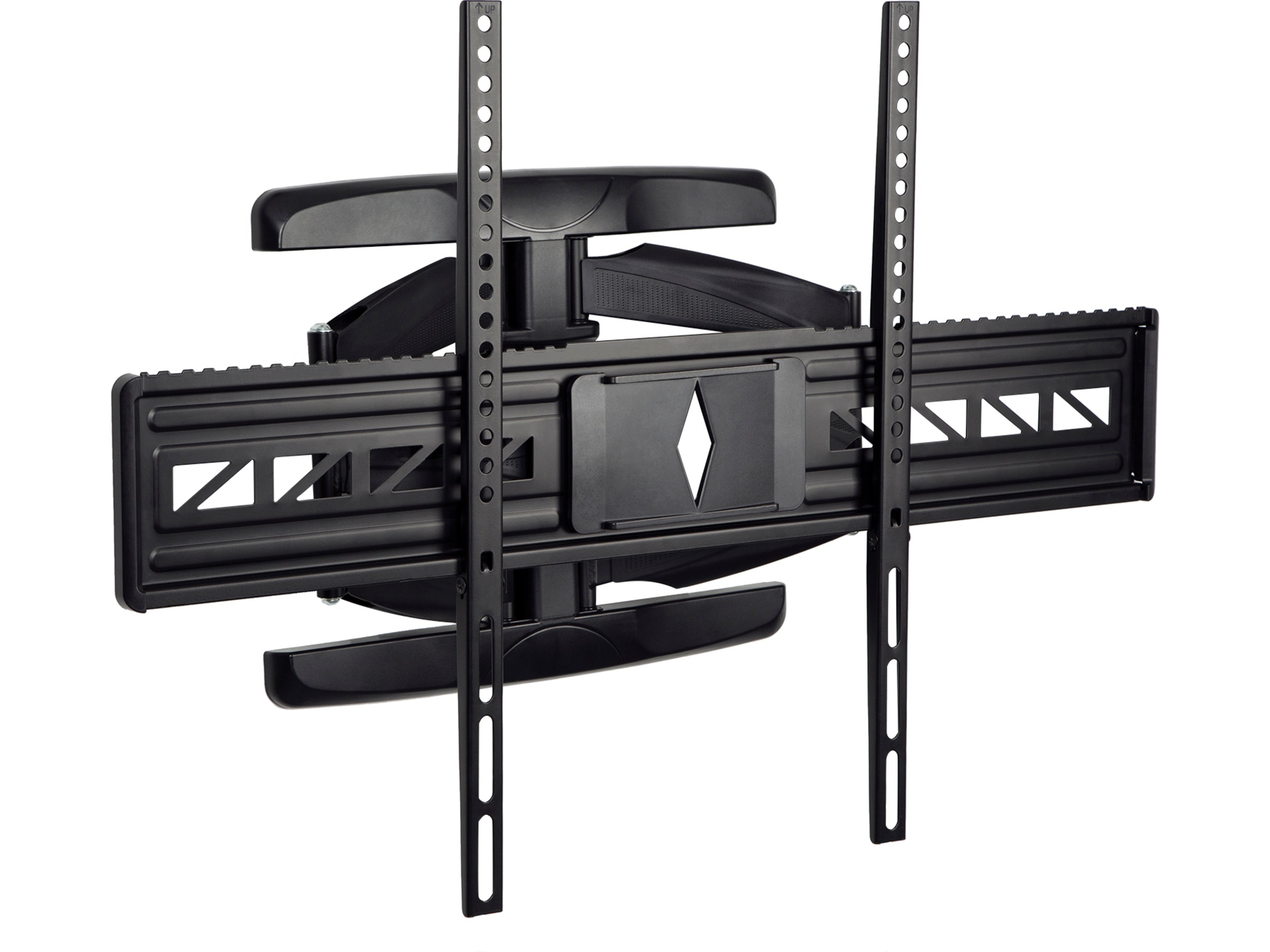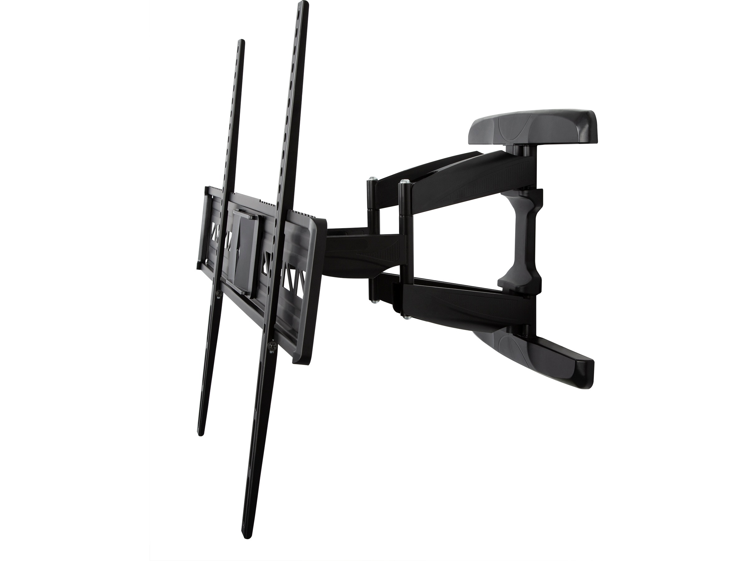 Med detta tvåarmade väggfäste kan du luta och vinkla din TV för att uppnå en optimal visningsvinkel. Möjligheten att dra ut TV:n 45 cm från väggen ger dig en stor flexibilitet. Det är enkelt att komma åt bakom TV:n för att montera kablar och lätt att luta - detta är ett mycket användarvänligt väggfäste för medium till stora TV-apparater. Detta fäste håller för upp till 60 kg. Armarna kan helt vikas ihop så att fästet bara står ut 5,5 cm från väggen. Du kan montera både en böjd eller platt skärm, och du kan välja om du vill ha plattskärmen i liggande (horisontell) eller stående (vertikalt) läge.