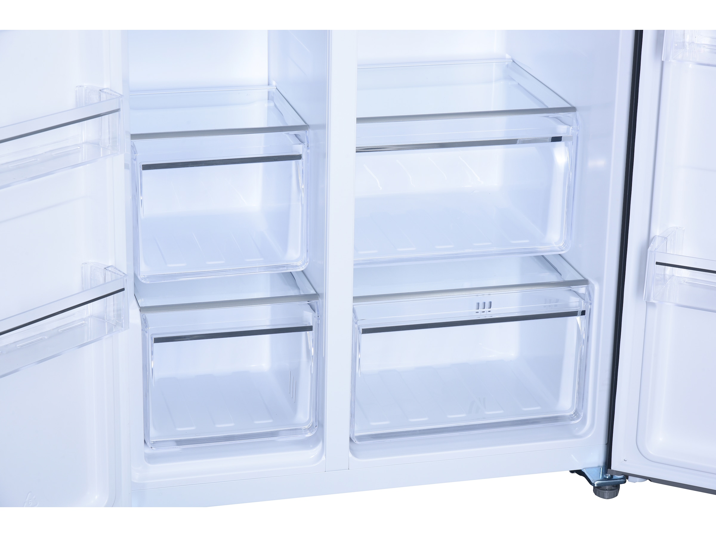 Kylskåpet har en kapacitet på 347 liter och frysen har en kapacitet på 185 liter. Totalt nettokapacitet på 532 liter gör detta till ett Side by Side-skåp med enorm kapacitet för dina drycker och matvaror.