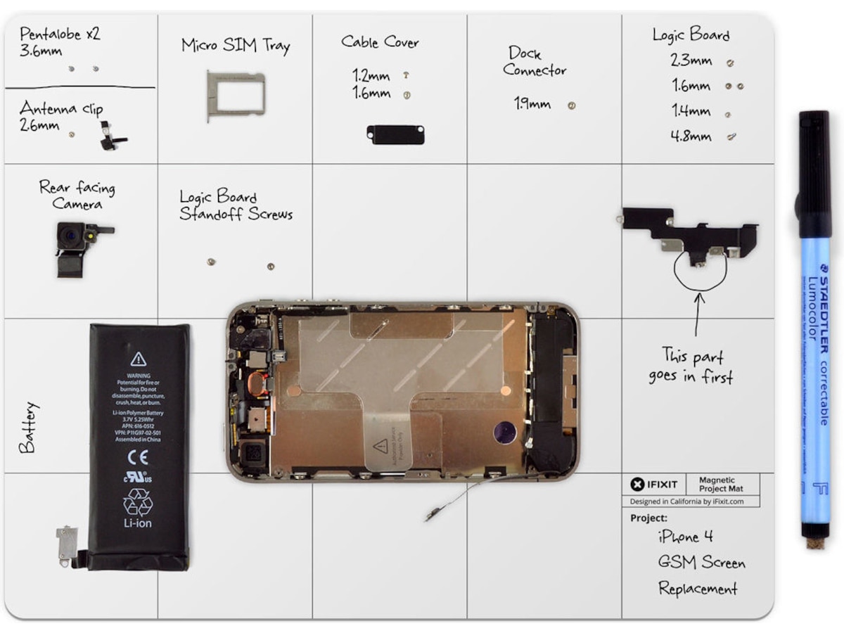 Mattan organiserar alla dina delar medan du arbetar på en enhet. På den torra raderbara ytan kan du göra anteckningar och förhindra misstag. Det minskar återmonteringstiden med upp till 40 % samtidigt som du förhindrar fel.