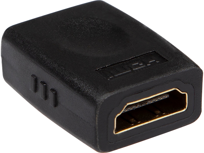 HDMI-adapter för att ansluta två HDMI-kablar - med honkontakt i båda ändar. Observera att en HDMI-kabel kan förlora hastighet och signal om kabeln är för lång.