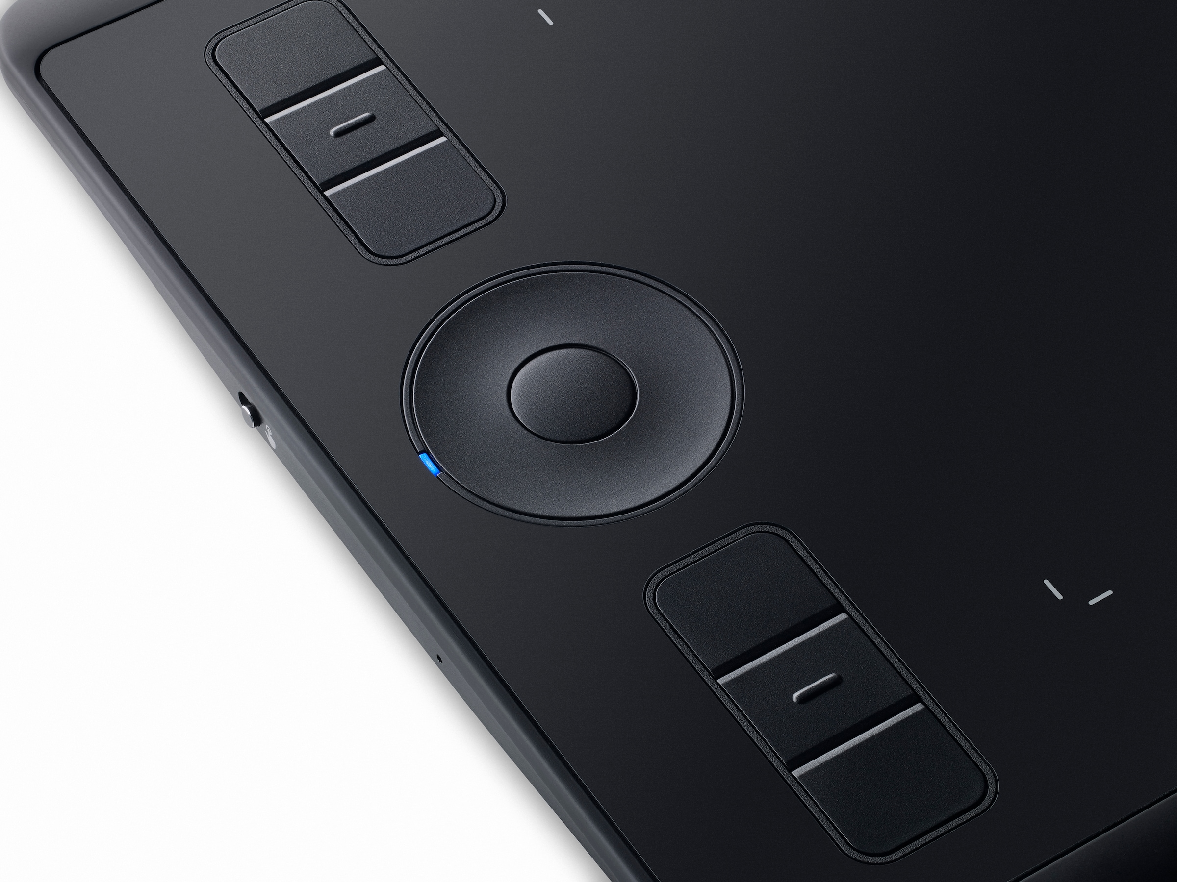 Wacom Intuos Pro comes in both Medium and Large sizes. Each has a smaller, more compact footprint than previous models. Wacom Intuos Pro is built using premium materials such as black anodized aluminum and fiberglass composite resin. The result is a pen tablet that feels reassuringly strong but is a mere 8mm thick.