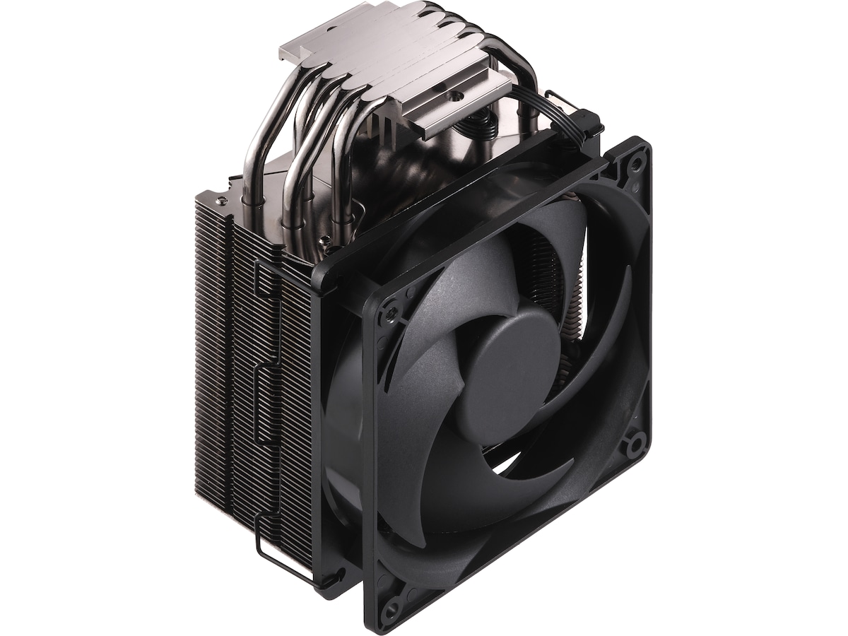 De staplade fläktbladen säkerställer minsta möjliga luftflödesmotstånd, vilket ger ett svalare luftflöde in i kylflänsen. Den nickelpläterade kolsvarta finishen ökar också kyleffekten
