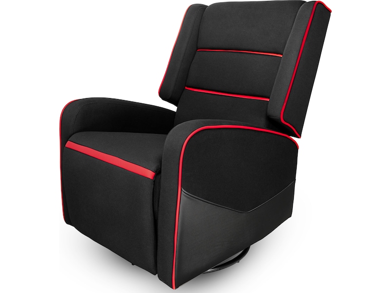 Din nya fåtölj kommer i en svart design med tuffa, röda accenter i PU. Hoba är klädd med ett praktisk och slitstarkt tyg utan irriterande gnissel, och som är lätt att rengöra. Du kommer aldrig att ångra köpet när du väl sitter i din nya Hoba, så länge du har utrymme för den förstås.