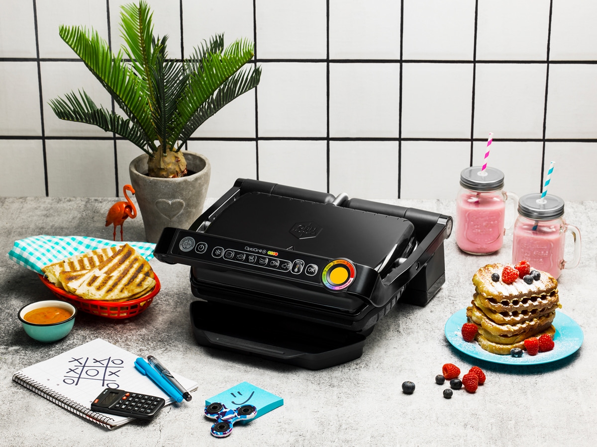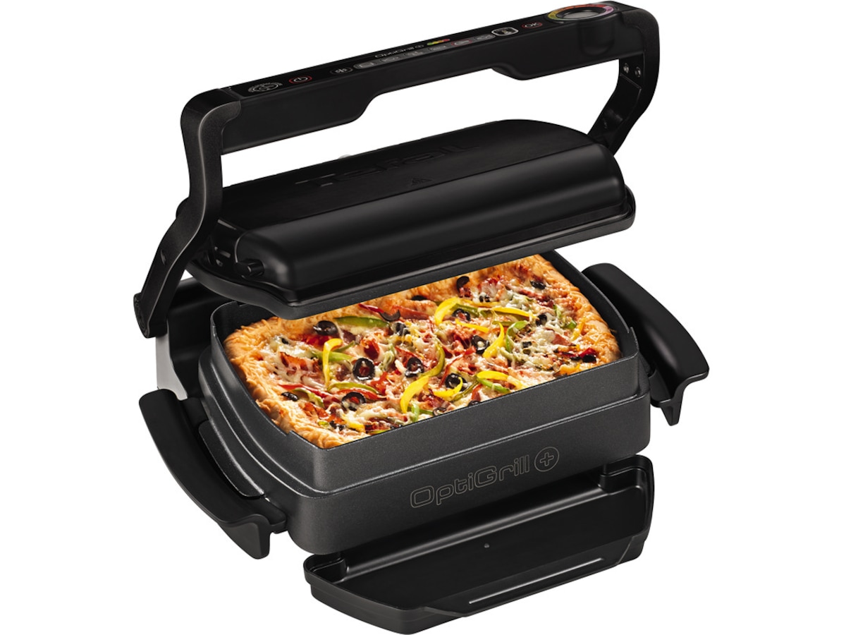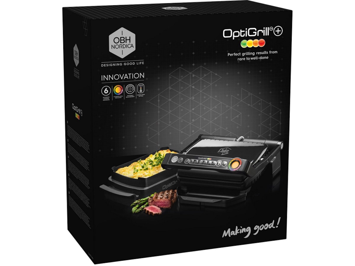 Optigrill+ med snackbricka ger ännu fler möjligheter för matlagningen och perfekt grillresultat varje gång. Kontaktgrill med sensorer som mäter maten och ger perfekt grillresultat. Pressgjuten släpplätt aluminiumpanna ingår Sex automatiska tillagningsprogram för olika livsmedel: hamburgare, fågel, smörgås, korv, rött kött och fisk Fyra manuellt inställda temperaturnivåer Indikator som visar tillagningsnivån, från blodigt till medium och genomstekt.