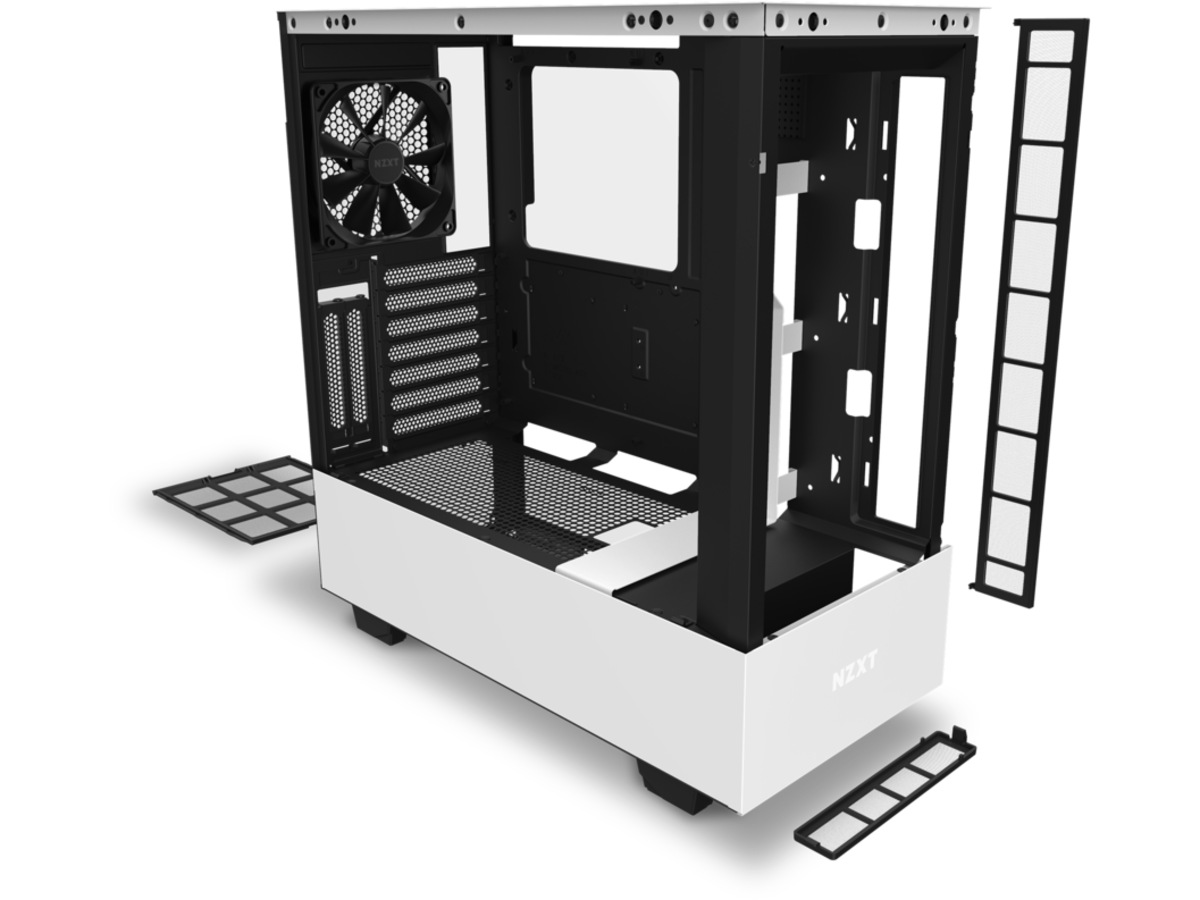 Stöder 2 st. 120/140 mm radiatorer framtill, Främre dammfilter, Stöder 120 mm element bak, Vattenkylningsförberedd, Kabelhanteringssystem, PSU-dammfilter |